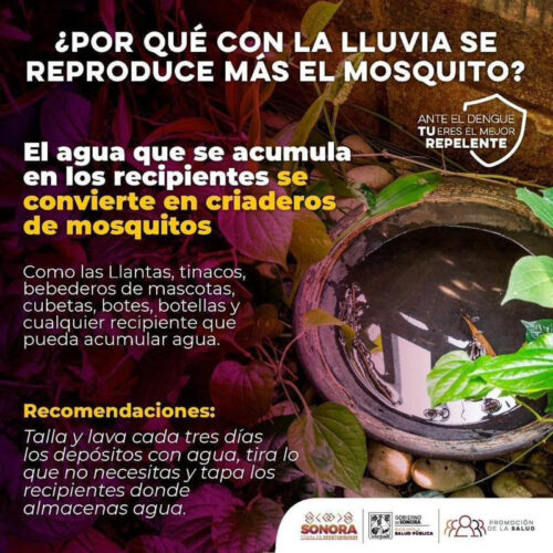 Antes de que las lluvias comiencen en el estado, la Secretaría de Salud (SSA) exhortó a la población a limpiar los alrededores del hogar, patios y porches, esto con la finalidad de eliminar los criaderos de mosquitos.
