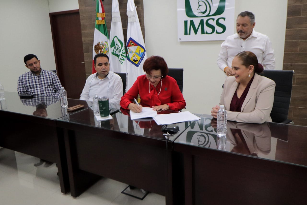 La titular del IMSS en Sonora, doctora María de Lourdes Díaz Espinosa, y la presidenta municipal de Guaymas, doctora Karla Córdova González, firmaron las escrituras correspondientes para la donación del terreno ubicado en Bulevar Aeropuerto y Bulevar Ramón Uribe Fourcade, en la colonia San Germán.