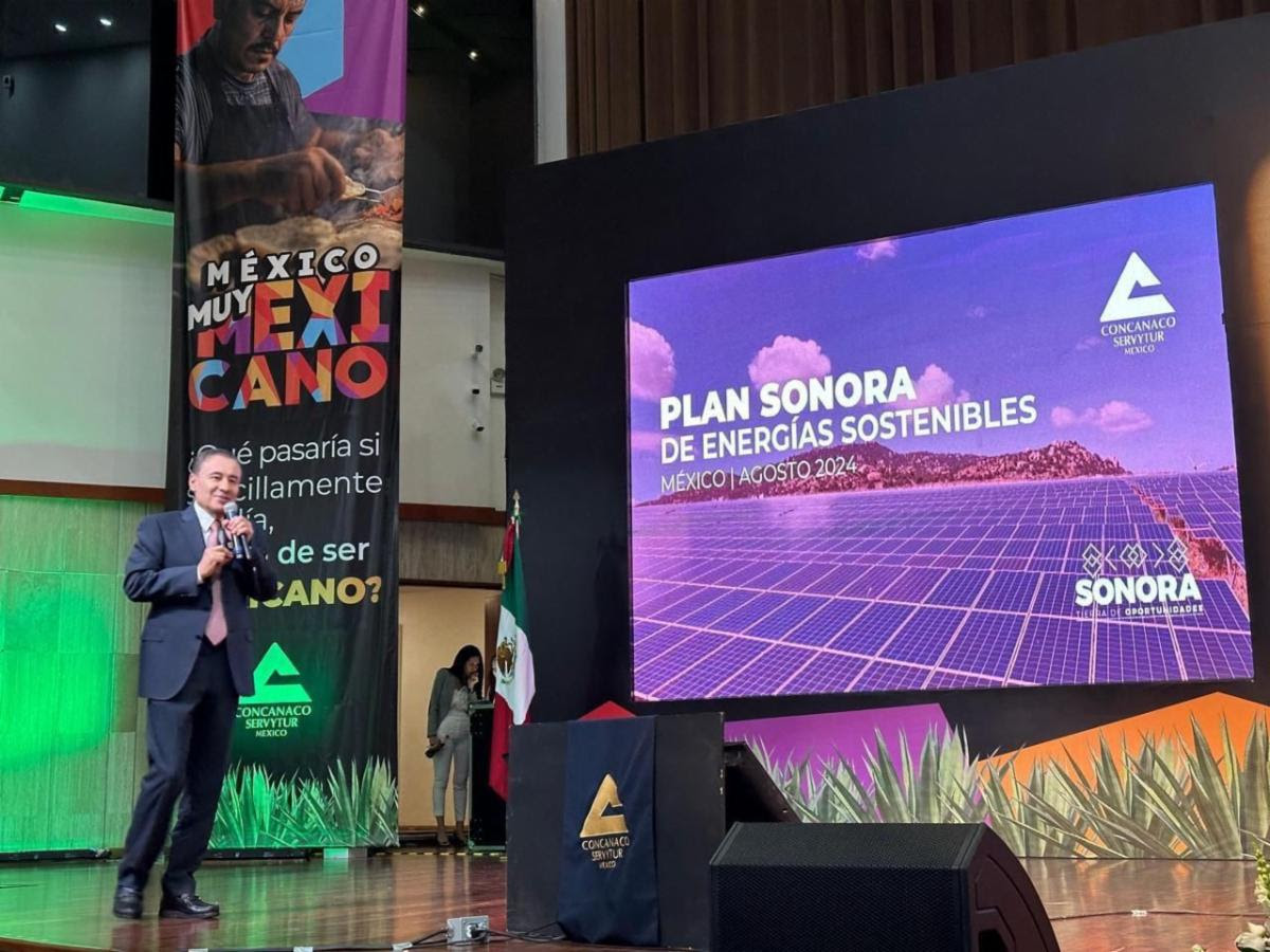 Al participar en una reunión con el consejo directivo de la Concanaco Servytur el mandatario estatal expuso los avances del Plan Sonora de Energías Sostenibles en el rubro de generación de empleos, turismo y crecimiento económico en la entidad, colocando al estado a la vanguardia mundial en el aprovechamiento de energías limpias.
