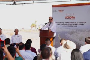 El mandatario estatal mencionó que esta obra carretera forma parte de las más de 100 acciones que se realizan en 19 municipios con el crédito de 2 mil 100 millones de pesos solicitado en 2023, con una inversión total de 96 millones de pesos en una extensión de 121 kilómetros, 10 de ellos por parte de la Junta de Caminos del Estado de Sonora y destacó la reciente entrega de la carretera de la comunidad Y griega hasta Puerto Peñasco rehabilitada, con una longitud de 23 kilómetros y una inversión de 30 millones de pesos.