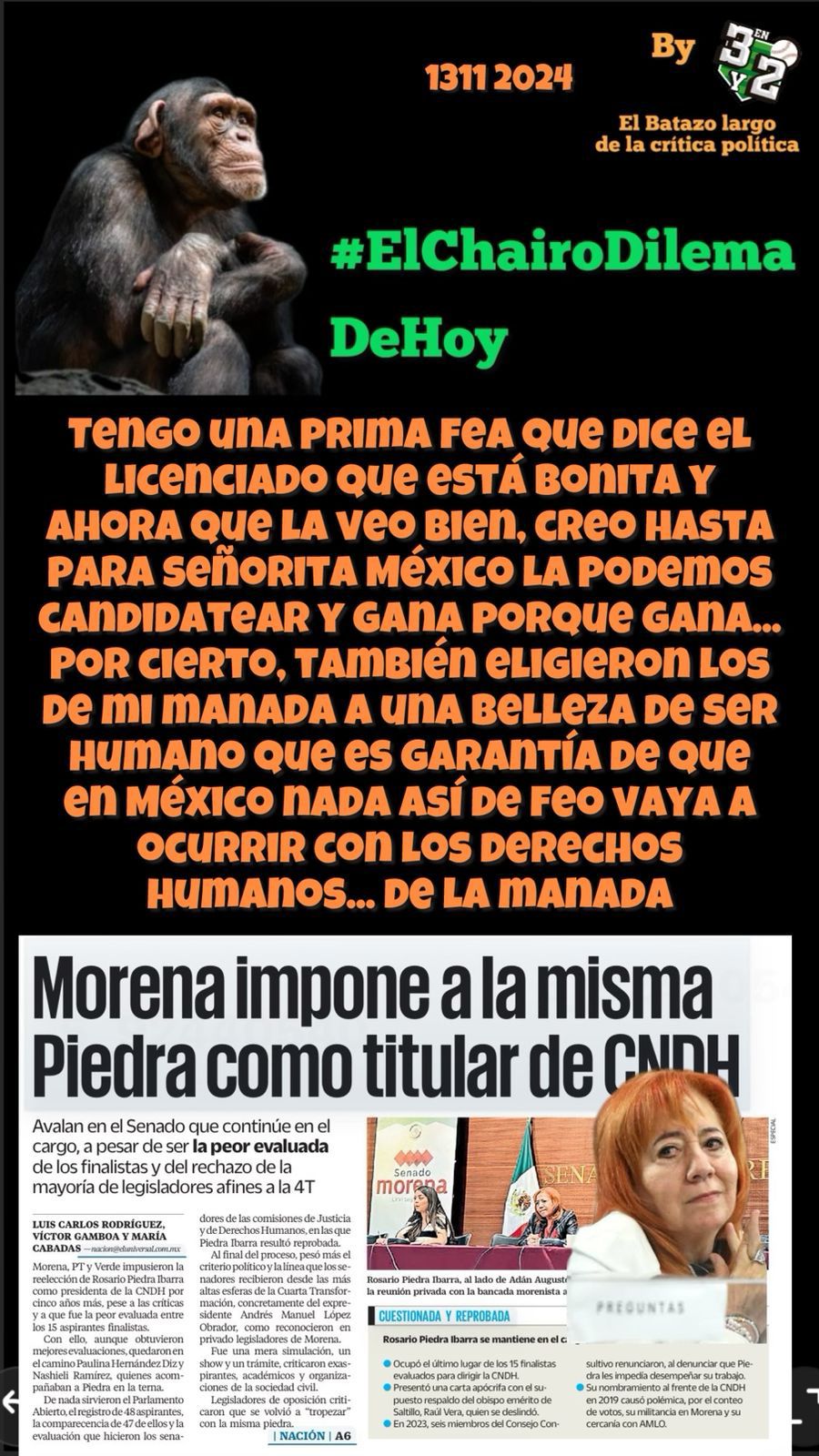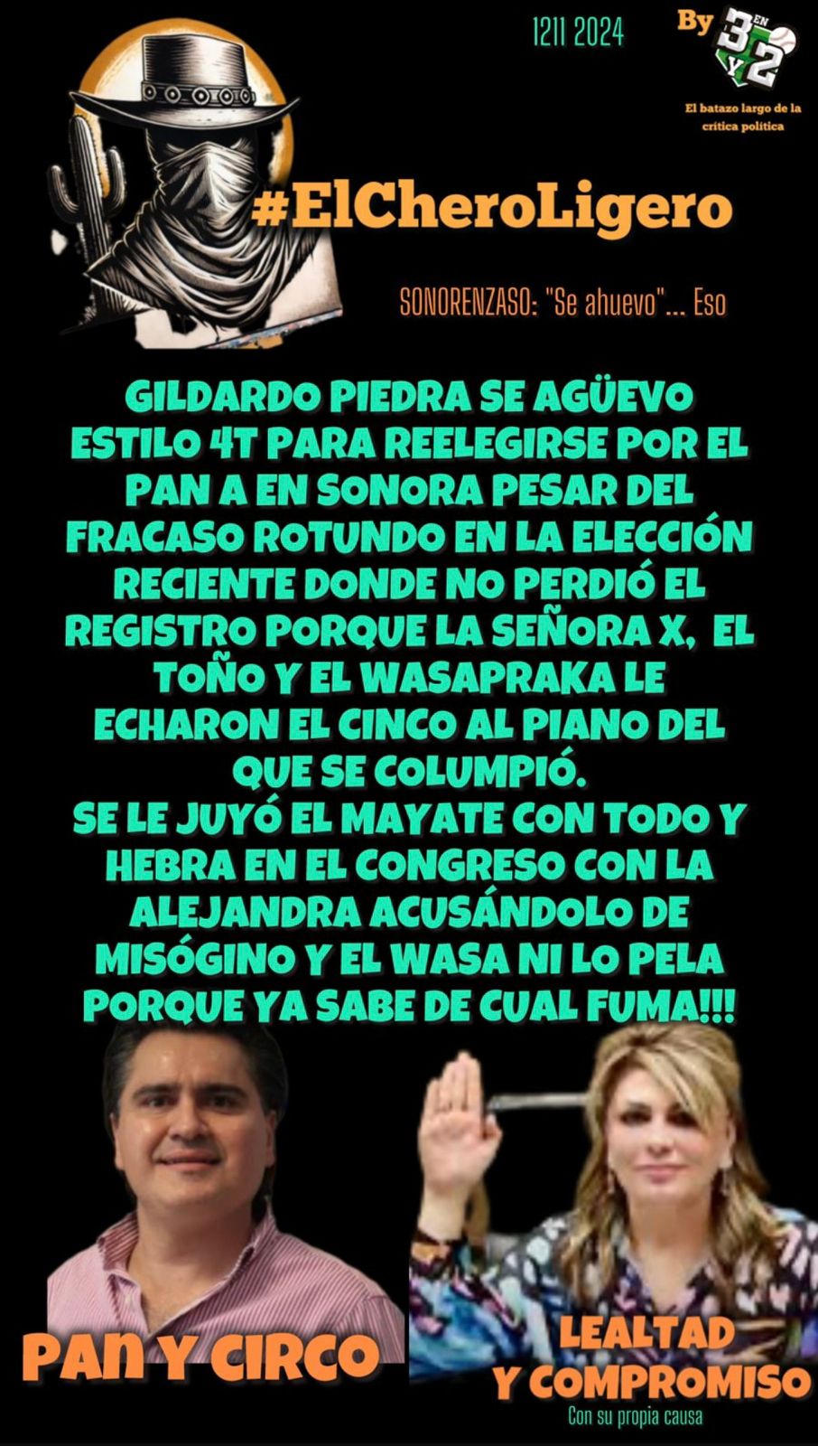 Todo comentario vertido en este despacho editorial, está sustentado en un análisis muy personal y sin que en ello tenga injerencia algún tipo de rechazo por motivos de género, orientación sexual, filiación política, creencia religiosa o cualquier otro argumento que cualquier persona pudiera asumir para decirse hostigada o cuestionada bajo el pretexto de alguna de tales aseveraciones.