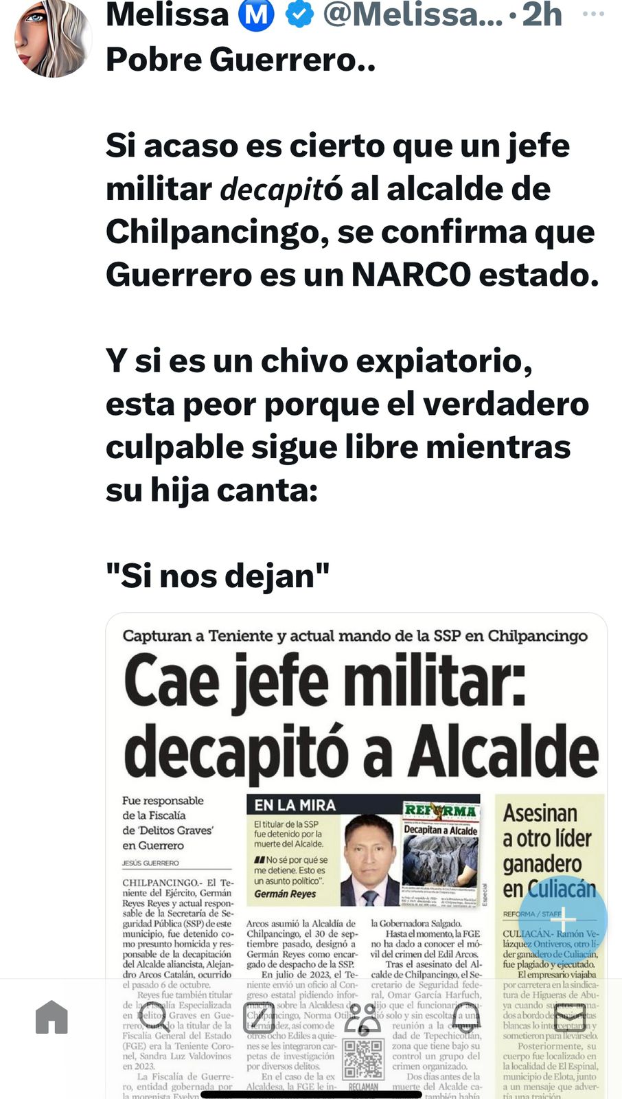 En fin, ya veremos qué comenta al respecto la señora Sheinbaum durante su conferencia “más-ñera” de hoy, rogando al cielo no termine de cajetearla con alguna insostenible defensa del mesías macuspano, quien por su partese refugia como jeque árabe en su finca La Chingada, protegido por cientos de elementos de la Secretaría de la Defensa Nacional y de la Marina, así como si tuviera algún temorcito de que alguien lo secuestre y lo deposite del otro lado de la frontera Norte.