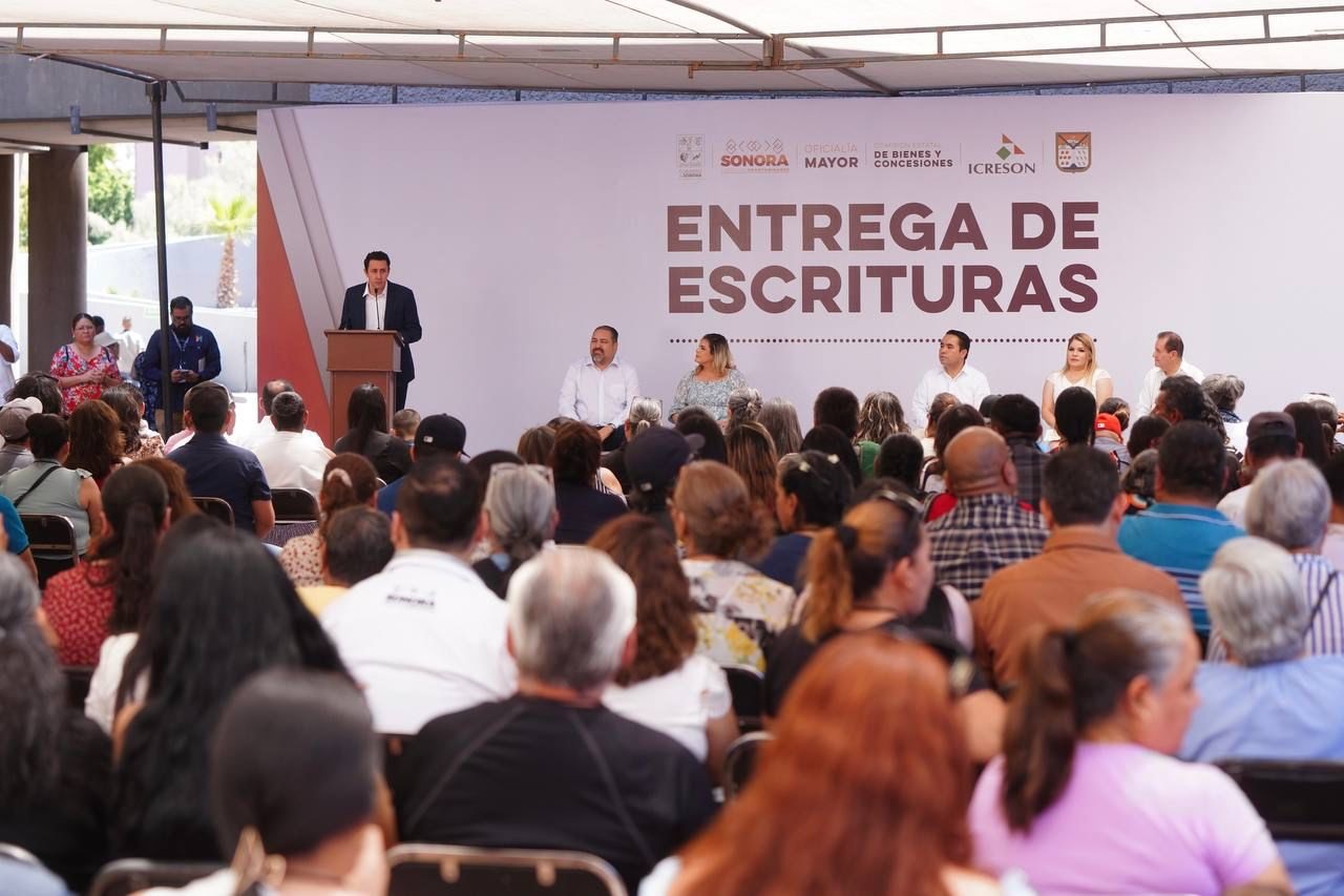 En cumplimiento del compromiso del gobernador Alfonso Durazo Montaño de contribuir a la seguridad patrimonial de las familias sonorenses, fueron entregadas 250 escrituras, con exención del cobro en el Registro Público de la Propiedad, a residentes de las colonias El Chaparral, Altares, Laura Alicia Frías, Los Olivos, Insurgentes e Internacional.