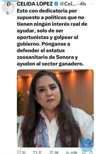 Esto con dedicatoria por supuesto a políticos que no tienen ningún interés real de ayudar, solo de ser oportunistas y golpear al gobierno. Pónganse a defender el estatus zoosanitario de Sonora y ayuden al sector ganadero. pic.twitter.com/SiW2GKnqKq