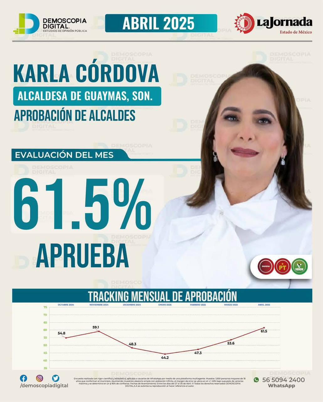 KARLA CÓRDOVA, ENTRE LAS AUTORIDADES MEJOR EVALUADAS