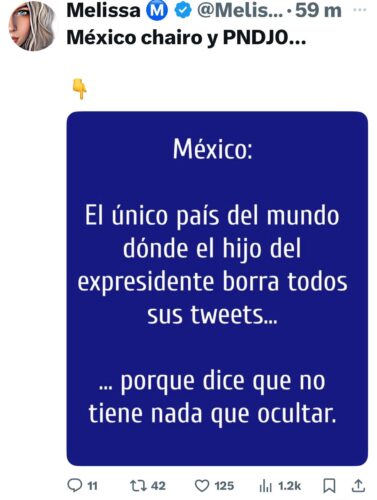 De igual forma en mensajes subidos a su cuenta X, Duarte Federico asegura que dicha obra significa un gasto de 75 millones de pesos, cuando en realidad el costo no superará los 30 millones de pesos, cifras muy dispares que exhiben un interés perverso de alguien que sí sabe que su dato es falso, pues ella es regidora y tiene acceso a esta información.