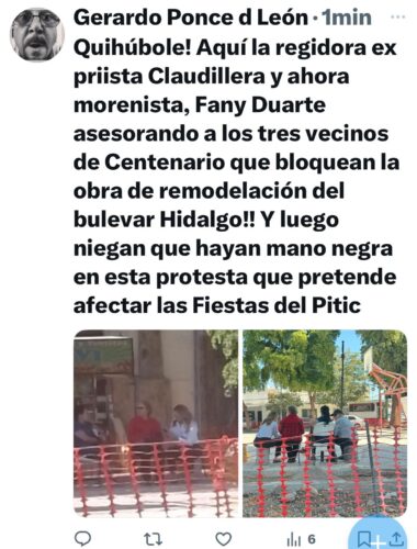 No tardó mucho en aflorar la autoría intelectual, por así decirlo, del supuesto movimiento ciudadano que bloquea en parte la rehabilitación de camellones del bulevar Hidalgo, tal como ayer lo advertía en este mismo espacio.