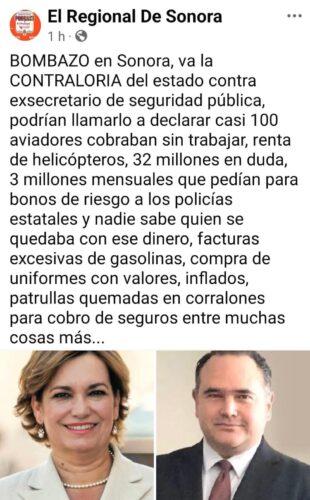 Por cierto, también a manera de trascendidos, circula fuerte la versión de que María Dolores del Río Sánchez, precisamente ex titular de la SSP y hoy día titular de la Secretaría Anticorrupción y Buen Gobierno, antes Contraloría General de Estado, investiga presuntas irregularidades encontradas a la salida de Víctor Hugo Enríquez del cargo en mención.