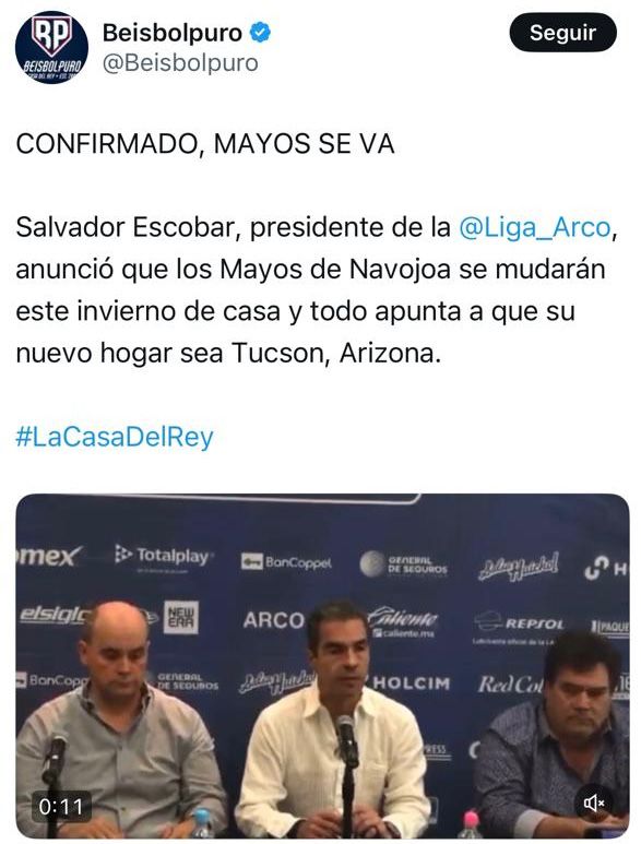 Ahora resulta que la franquicia de Mayos se va a Tucson, Arizona, pero allá seguramente pasarán a ser Los Coyotes o Los Saguaros de Tucson, o algo así; nada qué ver con el orgullo de portar una casa de Mayos.
