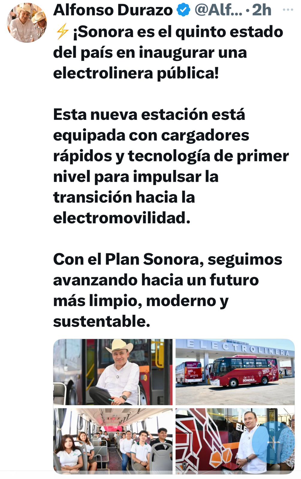 “Si bien el día de hoy estamos inaugurando una electrolinera, es un paso histórico en el sentido de que afianzamos el rumbo de ubicar a nuestro estado como una entidad de vanguardia en materia de transición energética, en materia de cambio climático”, destacó el nativo de Bavispe en su intervención luego del tradicional corte del listón inaugural.