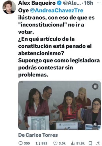 Como usted sabe, porque ya lo he comentado en anteriores ocasiones, esto de la elección para la renovación de ministros, magistrados y jueces federales y estatales del próximo domingo, me parece una farsa muy mal montada, y derivado de ello es que he tomado la decisión personal no acudir a las urnas.