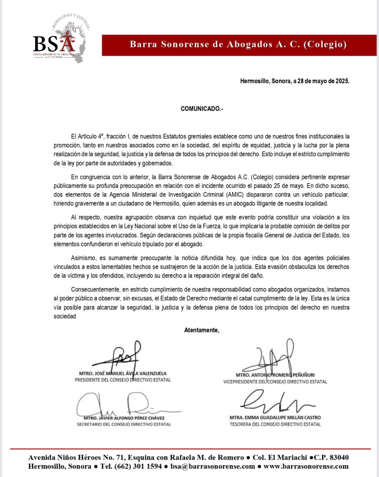 “Le manifiestan a su superior jerárquico, que fueron perseguidos por unas camionetas, y que un vehículo les cierra el paso, ellos consideran, y piensan que era una agresión, por la cual le disparan, resultando herido el tripulante del vehículo; el tripulante del vehículo es un particular que no tiene qué ver con los hechos, no es un delincuente, y el cual ya se encuentra en el hospital, está delicado de salud, y fue una circunstancia por la cual, aun y cuando fue una confusión, pues ya fueron judicializados los elementos de la policía”.