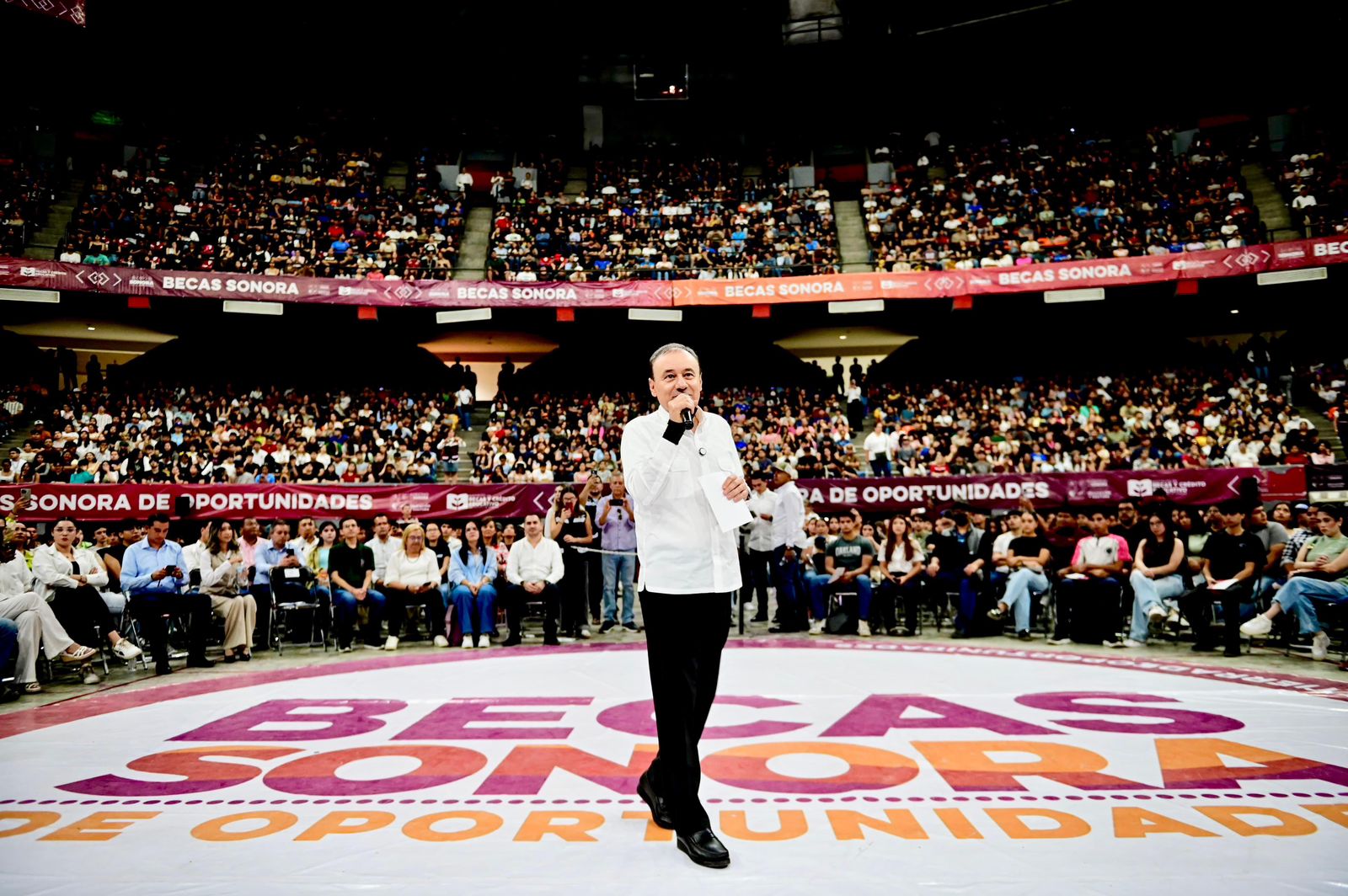 “Las y los jóvenes sonorenses son mi mayor preocupación, y representan mi mayor compromiso. Estoy aquí para atestiguar personalmente este esfuerzo que significa una oportunidad concreta para que puedan continuar sus estudios”, destacó el mandatario estatal durante este evento que se enmarca en los festejos por el Día del Estudiante.