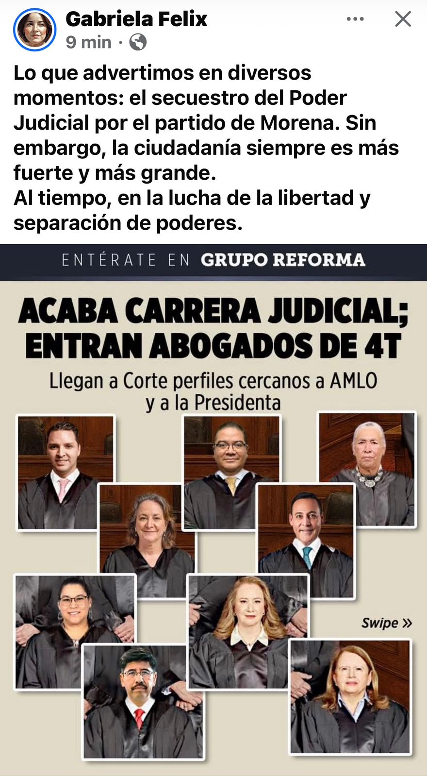 “No hay espacio para dudas ni para manipulaciones. La certeza y la confianza en los resultados es, y seguirá siendo, nuestra principal prioridad”, destacó la hermosillense, ya despojada de todo ápice de vergüenza al referirse al resultado obtenido luego de la farsa electoral del pasado domingo para dizque renovar el Poder Judicial.