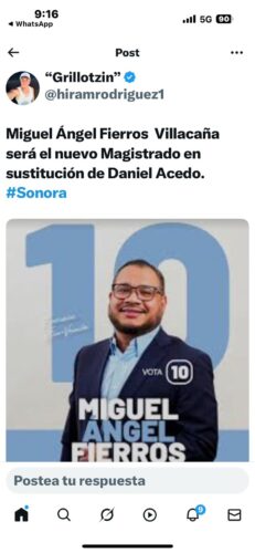 Al final el único colgado de la brocha fue Daniel Humberto Acedo Fimbres, quien “renunció” a su candidatura y elección por abrumadora mayoría como magistrado del Tribunal de Disciplina Jurídica (TDJ) del Supremo Tribunal de Justicia del Estado, esto bajo el argumento de que su posición podría interpretarse como un conflicto de intereses al ser esposo de María Lizbeth Gardner, algo en lo cual supuestamente cayeron en cuenta ya el mero día de la elección, la mañana del pasado domingo.