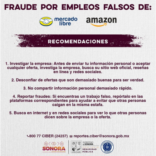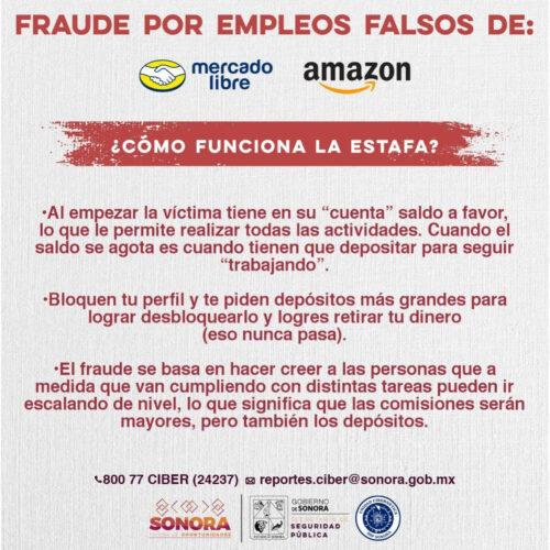 Con el objetivo de prevenir que personas en busca de empleo sean víctimas de fraude, el Gobierno de Sonora, por medio de la Unidad Cibernética de la Secretaría de Seguridad Pública (SSP), advirtió sobre una modalidad de fraude que ofrece atractivos empleos publicados en redes sociales.