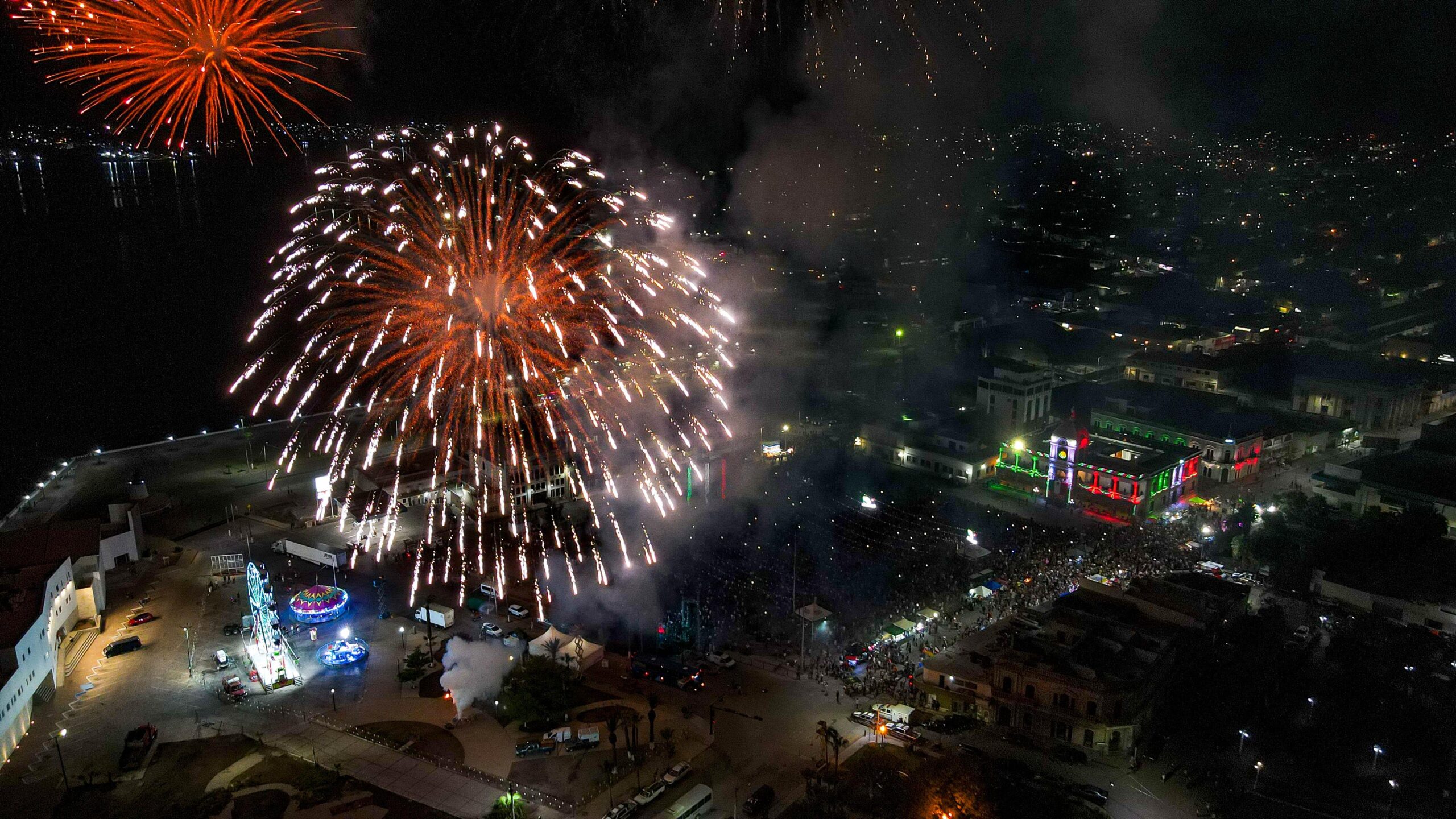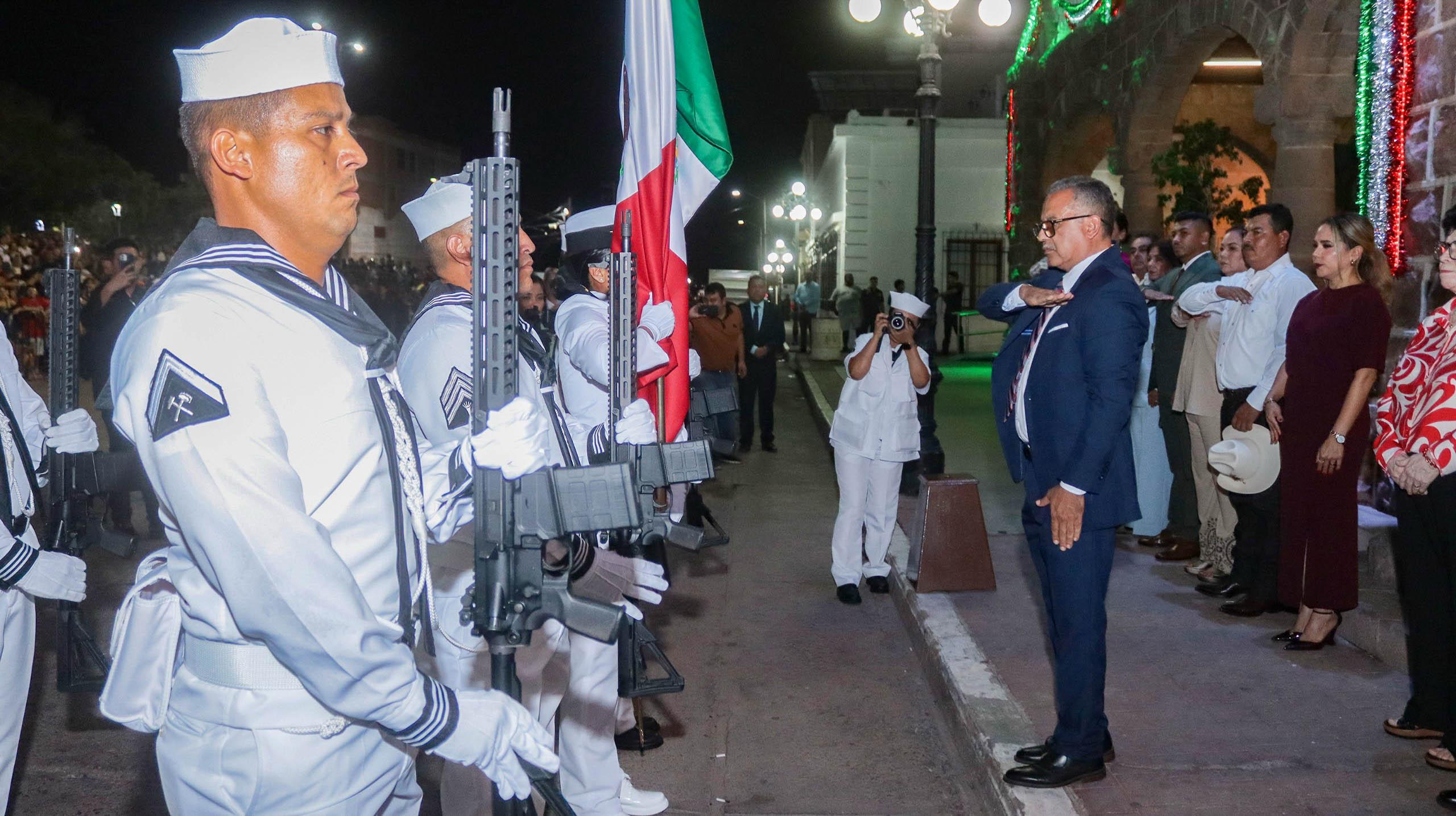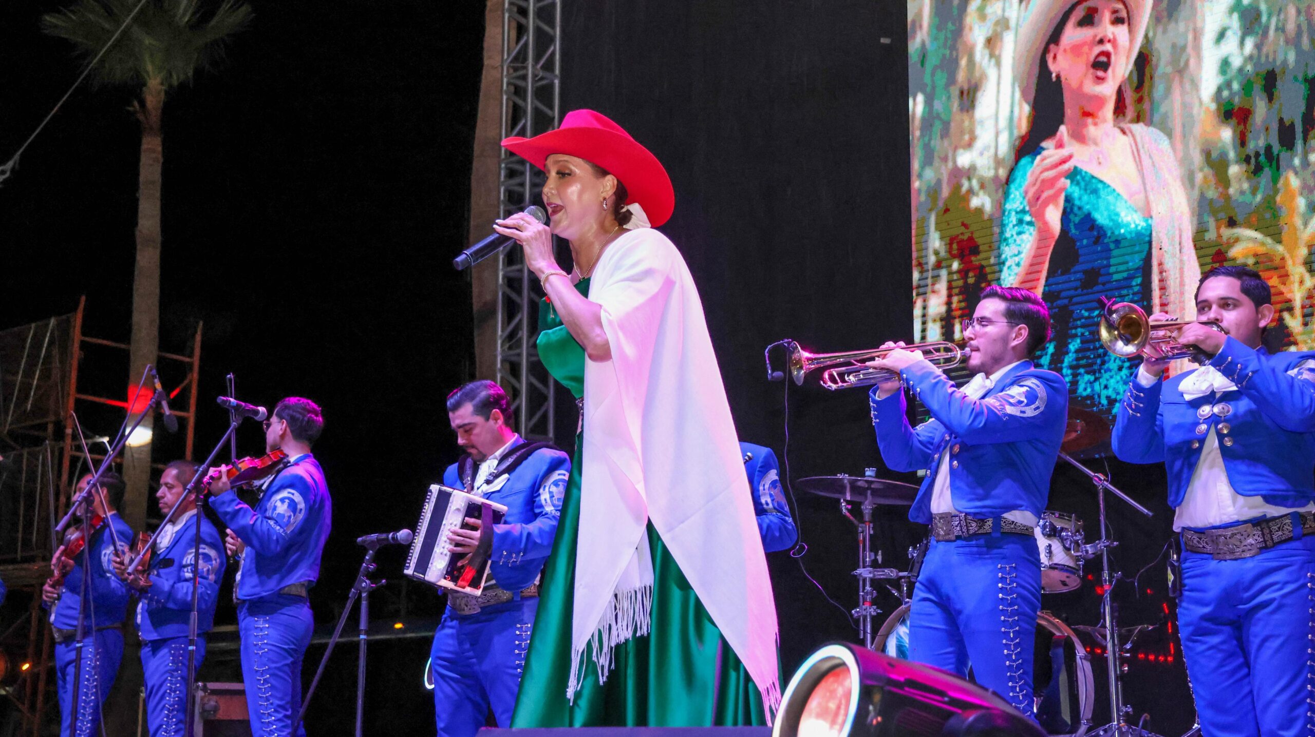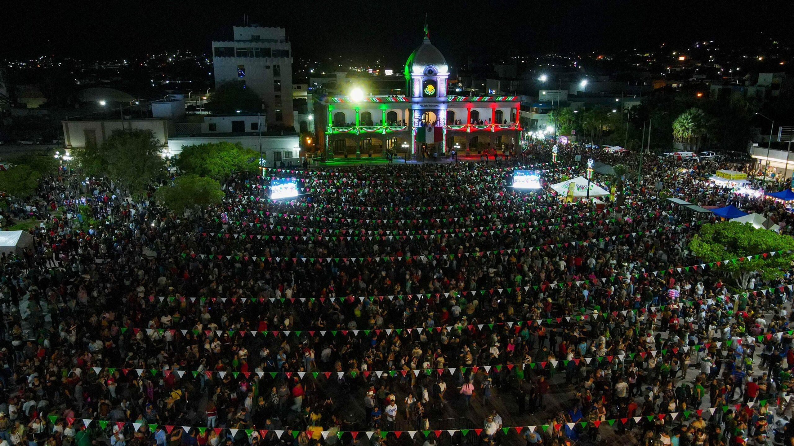 La celebración culminó con el tradicional espectáculo de fuegos pirotécnicos que iluminó el cielo de Guaymas y llenó de color y alegría la noche, mientras las familias y asistentes disfrutaban de un ambiente de fiesta y orgullo nacional con la presentación de Los Brujos, Pauta Azul y Chayito Valdez, hija.