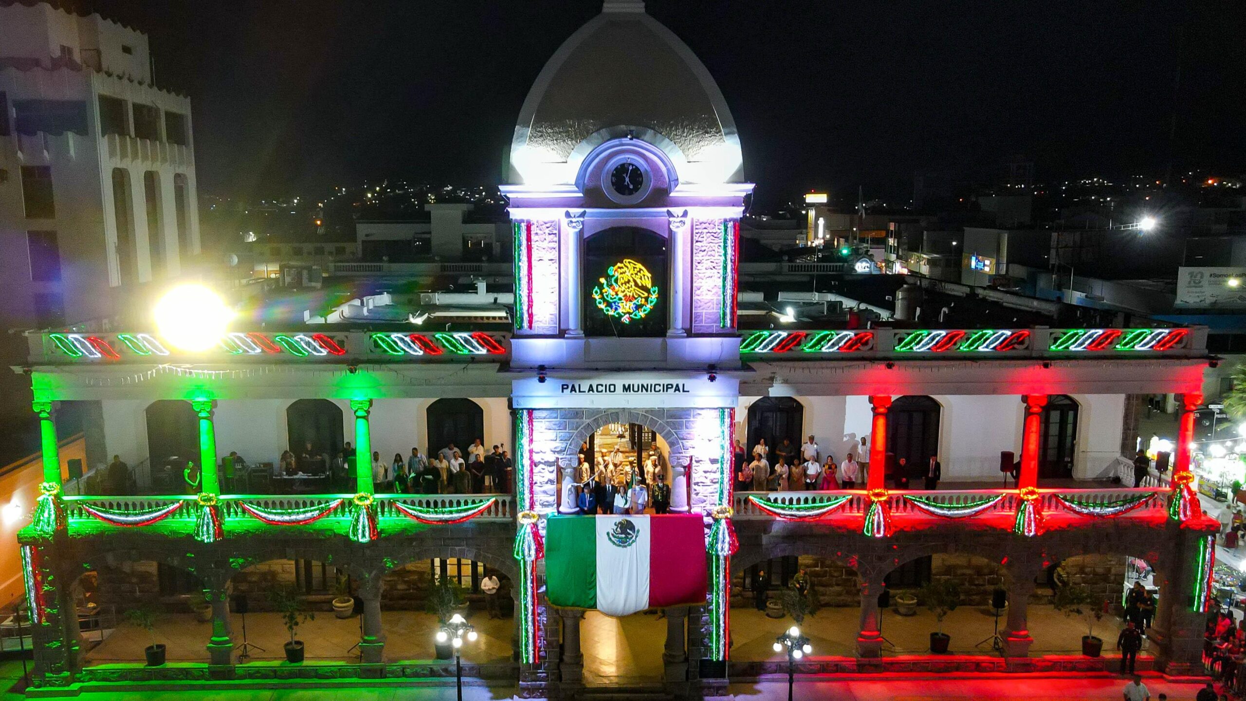 Desde el balcón principal de Palacio Municipal, la doctora Karla Córdova González recordó la memoria de los héroes patrios y, con voz firme, pronunció el tradicional ¡Viva México! ¡Viva la Independencia! ¡Viva Hidalgo!, despertando el fervor entre los presentes.