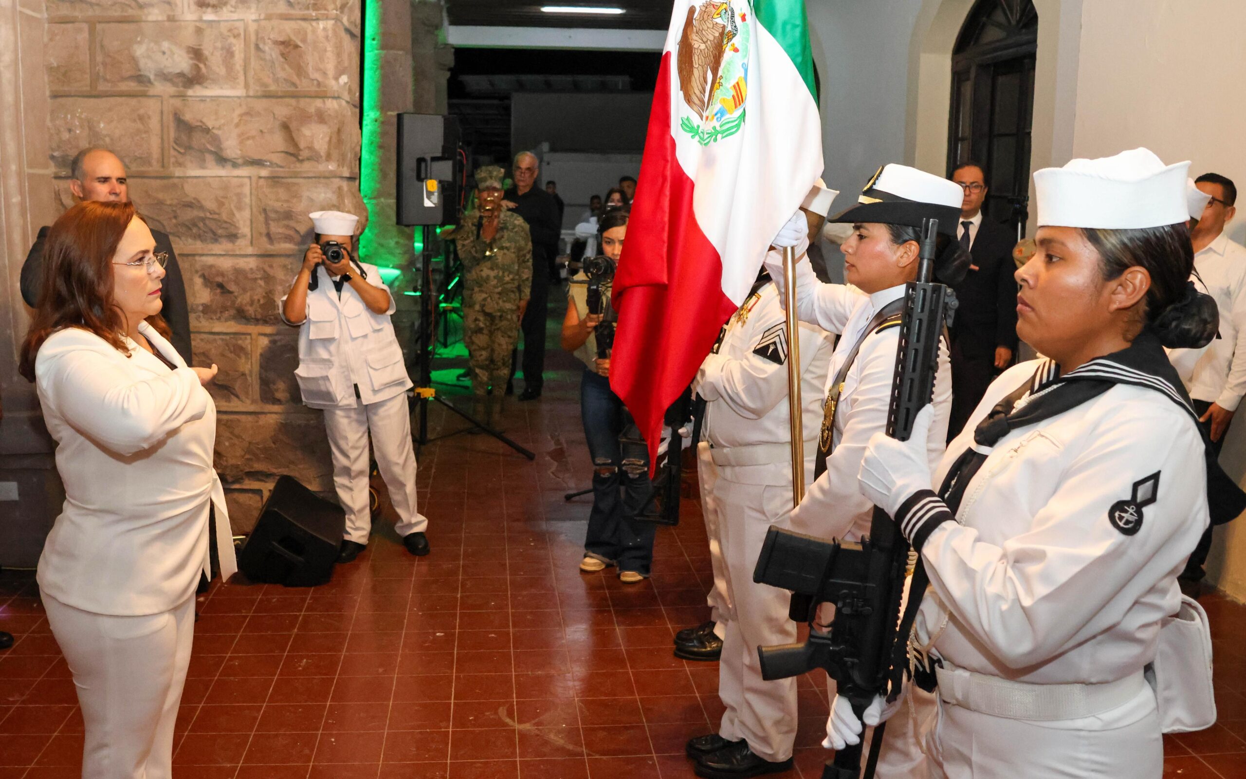 Durante la ceremonia, el síndico municipal, Celestino Sarabia Tautimez, entregó la bandera nacional a la alcaldesa, quien posteriormente entonó el Himno Nacional Mexicano junto a los asistentes; posteriormente, el secretario del Ayuntamiento, Herman García Luna, dio lectura al Acta de Independencia.