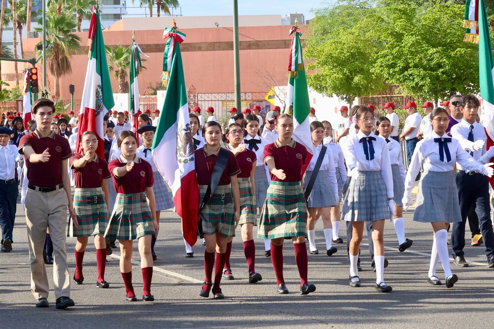 En el desfile de celebración por la Independencia de México, participaron más de mil 400 personas, entre estudiantes y elementos de las fuerzas armadas que conformaron los distintos contingentes.