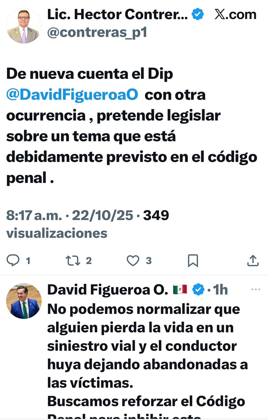Y posteriormente agregaría el mismo jurisconsulto lo siguiente: “De nueva cuenta el Dip @DavidFigueroaO con otra ocurrencia, pretende legislar sobre un tema que está debidamente previsto en el código penal”.