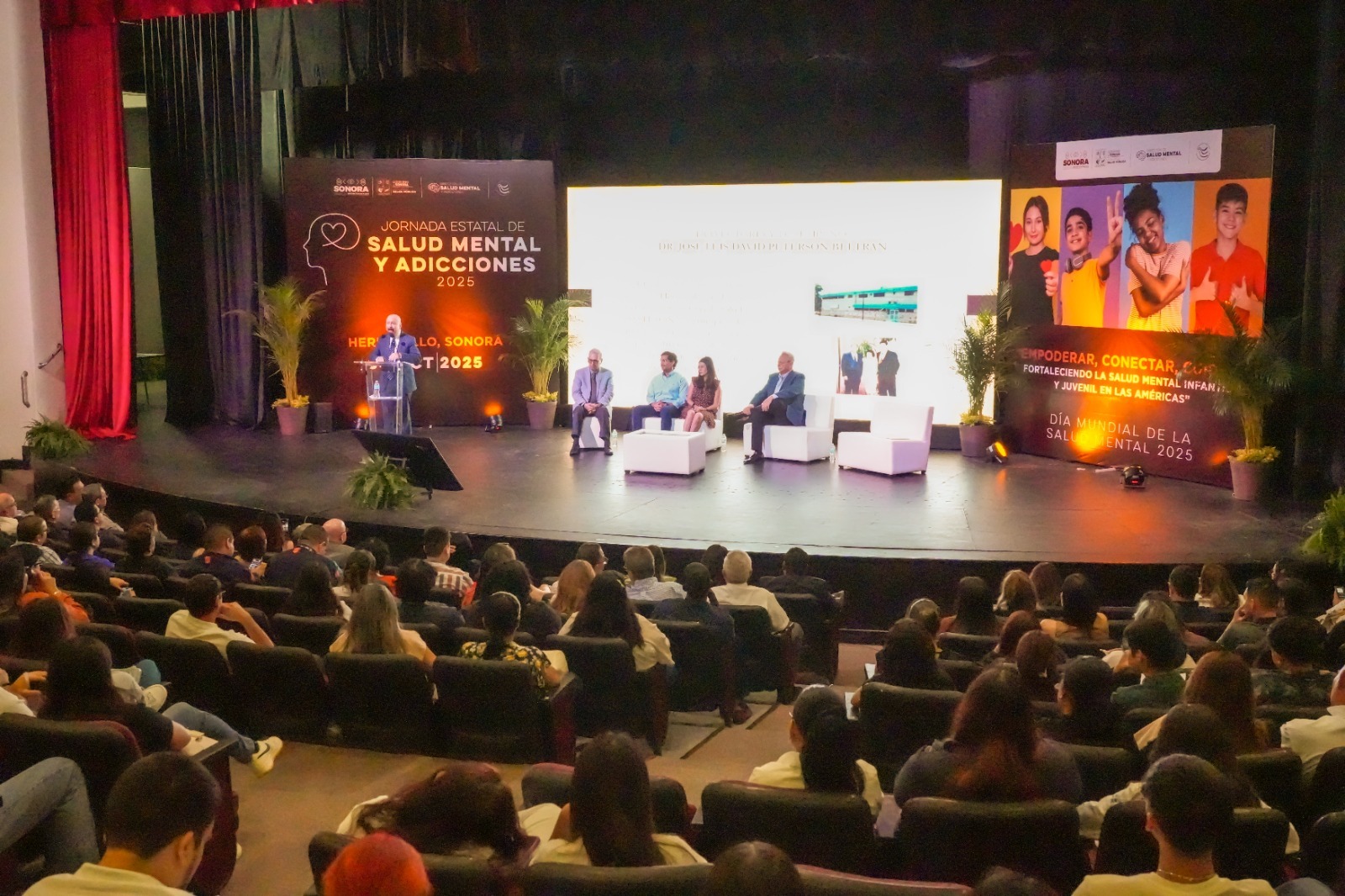 Hermosillo, Sonora; 31 de octubre de 2025.- Con el propósito de fortalecer la calidad de atención a la población sonorense, el Gobierno de Sonora, a través de la Secretaría de Salud Pública, realizó la Jornada Estatal de Salud Mental y Adicciones 2025 bajo el lema “Empoderar, conectar, cuidar: Fortaleciendo la salud mental infantil y juvenil en las Américas”. El evento se llevó a cabo el 30 de octubre en el Auditorio Cívico del Estado.