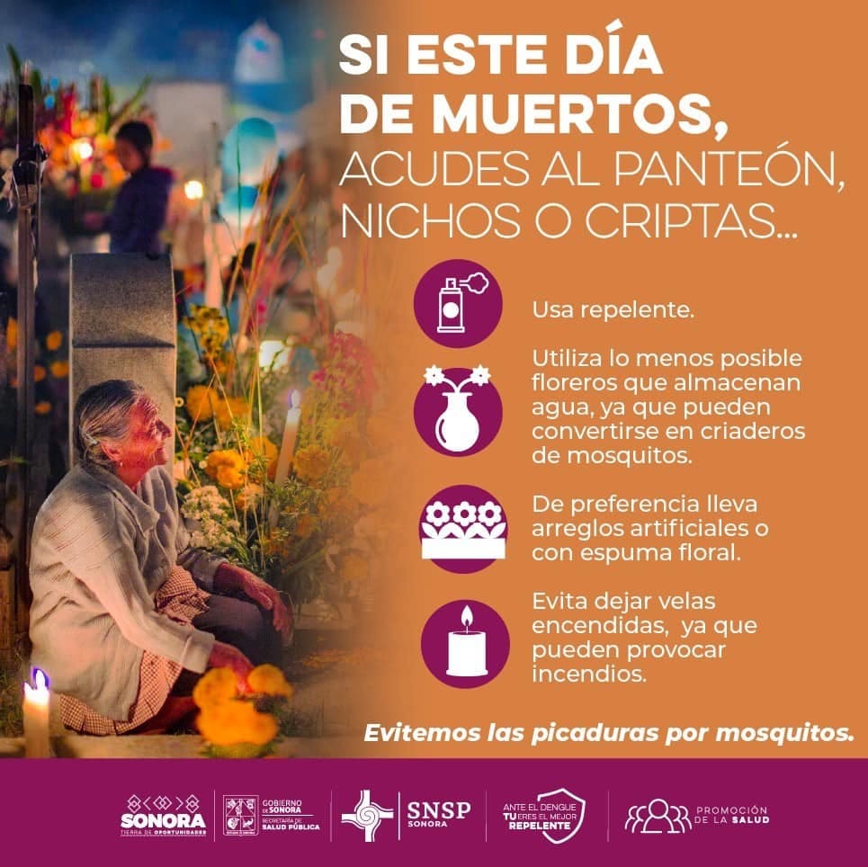 Con motivo de las festividades del Día de Muertos, el Gobierno de Sonora, a través de la Secretaría de Salud, hizo un llamado a la población para mantener medidas preventivas que eviten la proliferación del mosquito transmisor del dengue en los panteones del estado.