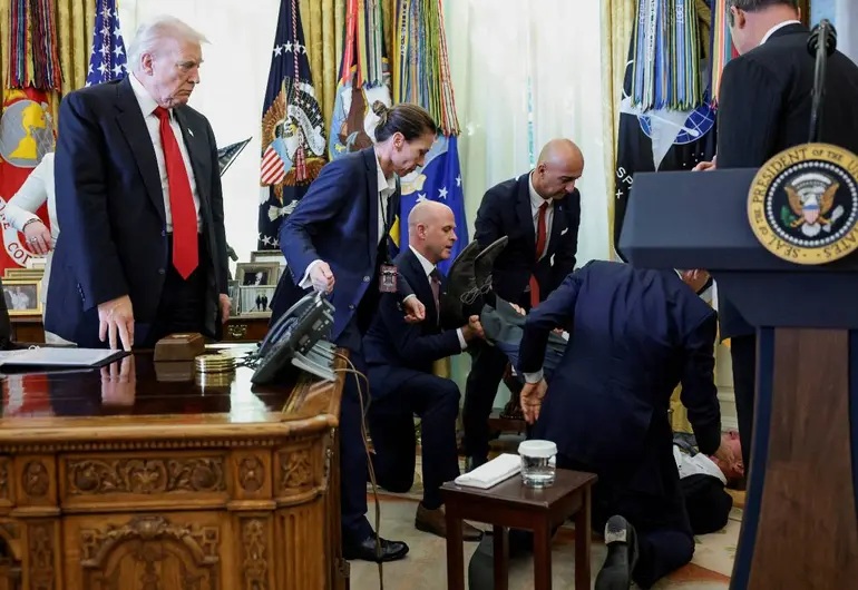 Una rueda de prensa “en el Despacho Oval de la Casa Blanca, dedicada la reducción de los precios de los medicamentos, terminó “abruptamente” el martes “luego que una de las personas presentes en la sala se desmayara”. Según el relato disponible, “el video en directo se apagó” y el hombre identificado es Gordon Findlay, ejecutivo de Novo Nordisk, farmacéutica implicada en el plan de Trump para reducir el costo de medicamentos contra la obesidad.
